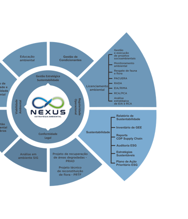 A NEXUS Estratégia Ambiental atua com um portfólio completo de soluções ambientais, integrando tecnologia e expertise para garantir a sustentabilidade de projetos nos mais diversos segmentos.